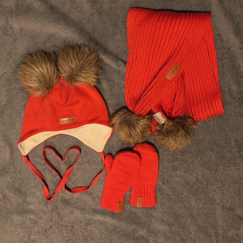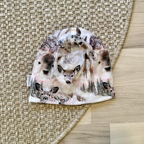 Kolme pipoa ja lakki, siisti käytetty kunto. Gugguun koko M, suunnilleen 2-3v. olivat meillä käytössä.