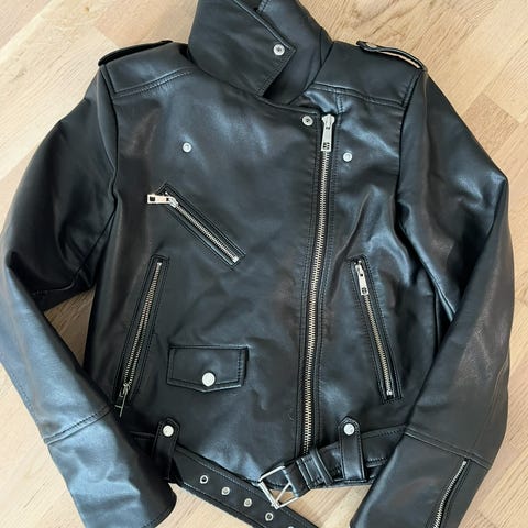 Musta keskipitkä nahkatakki neljällä taskulla. Kokonaan ehjä 🤍