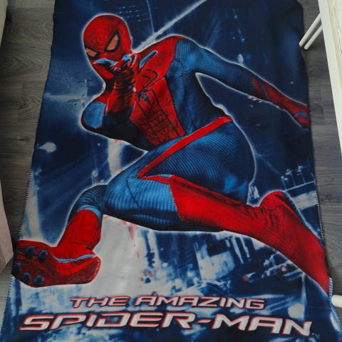 Hupullinen Spiderman-pyyhe, sivut avoimet. Asettuu päälle poncho-mallisesti. Muutaman kerran ollut käytössä. Katsoin läpi enkä huomannut mainittavaa, mutta otathan huomioon että tuote on käytetty enkä ole syynännyt suurennuslasilla.
