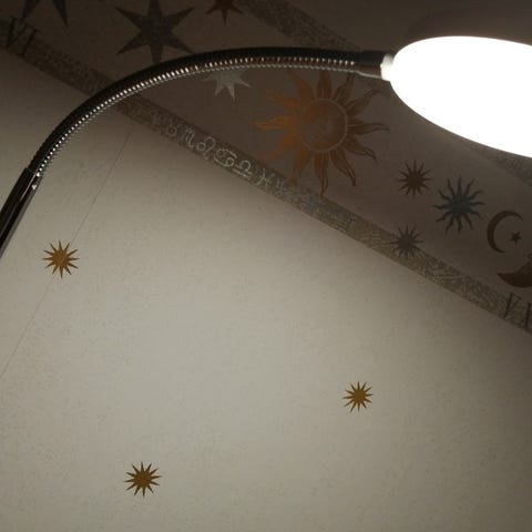 Laita valaisin huoneen nurkkaan ja anna valon heijastua huoneeseen seinän kautta.