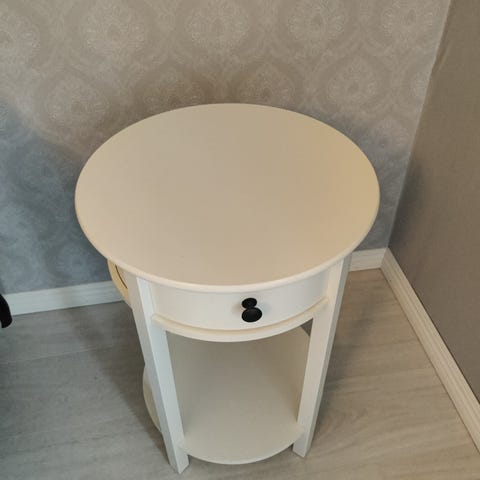 Yöpöydän valkoinen väri tuo huoneeseen luonnon harmonista värimaailmaa, ja petsatut yksityiskohdat korostavat puun kauneutta. Sopii erinomaisesti yhteen huonekalujen