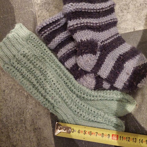 Hyväkuntoiset villasukat vauvalle. Jalkaterän pituus n. 10 cm. Pysyvät hyvin jaloissa nilkassa olevan nyörin avulla.