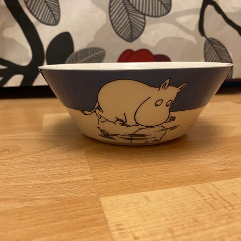 Uusi kaksipuoleinen muumi lautanen omassa pakkauksessaan.