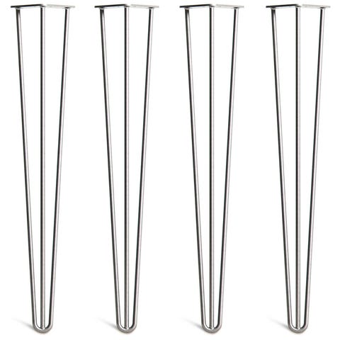 Täysi setti (4 kpl) laadukkaita metallisia pöydän jalkoja. Pinnijalat ovat pituudeltaan 71cm ja 3 sauvalla varustetut. Näillä jaloilla on mahdollista toteuttaa esimerkiksi unelmiesi lankkupöytä tai etätyöpiste. Pitkät pinnijalat soveltuvatkin hyvin työpöytään, ruokapöytään tai korkeaan sivupöytään. Tuotetiedot Väri: Musta. Pakkaus sisältää puuruuvit ja tyyliin sopivat tassut. Materiaali: Jauhemaalattu teräs, teräksen paksuus 10mm. Paino: 6,5kg Painoraja: Suositeltu pöytälevyn maksimipaino näiden jalkojen kanssa on noin 60kg. Huom. tästä jalkamallista löytyy myös jykevämpi HEAVY DUTY -malli raskaisiin projekteihin (painoraja jopa 120 kg pöytälevyihin). Lue lisää teknisistä tiedoista UKK-osiosta. Kestävää ja käytännöllistä muotoilua Pinnijalat ovat lähtöisin jo 1940 luvulta, kun Henry P. Glass suunnitteli kyseiset pöydänjalat. Tämä designklassikko syntyi siis toisen maailmansodan aikaan kun raaka-aineiden (ml. metallien) saatavuus oli heikkoa. Koska metallien saatavuus oli tuolloin hankalaa, syntyi oivallus hiuspinnin muotoisista jaloista. Muotonsa ansiosta pinnijalat pystyvät kannattelemaan huomattavaa painolastia säilyttäen samalla kevyen ilmeen. Pinnijaloissa yhdistyy siis modernin funktionalismin ajattelutapa, jossa muotoilu palvelee ennen kaikkea käytännöllisyyttä. Arvostamme laadukasta käsityötaitoa ja siksi jokainen pinnijalkamme on valmistettu alusta loppuun huolellisesti käsityönä. Vaikka pinnijalkamme ovat yksilöitä, ei tiukoista laatuvaatimuksista tingitä. Pinnijalkamme on tarkoitettu sinulle Tuotteemme ovat suunniteltu erityisesti huonekalujen tuunaajille, sisustalan ammattilaisille ja tee-se-itse mentaliteettia harjoittaville suomalaisille. Näiden laadukkaiden metallijalkojen avulla saat aikaan vakaan ja tyylikkään ilmeen niin uusille kuin vanhoille huonekaluillesi.