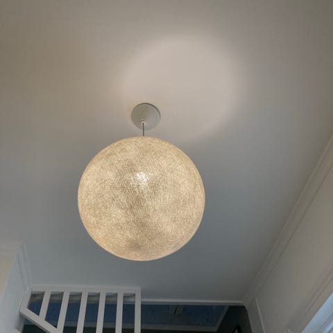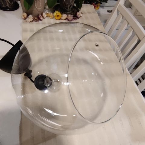 Roikkuva pyöreä lasinen kattovalaisin. Korkeus säädettävissä. Pistoke ja lamppu ei sisälly. E27 polttimolla toimiva.