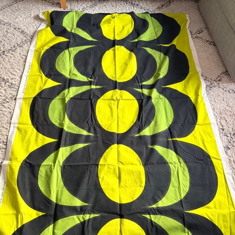 Nämä haalistuneet molemmat toisesta reunasta. Aurinko haalistunut. Toimii hyvin vanhan talon pienehköissä ikkunoissa noin hyvin. Myös näistä tehtävissä paneli- tai kappaverhoja. Menee myös pöytäliinana.
