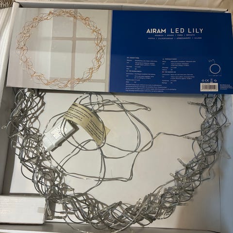 Käyttämätön, vielä paketissaan oleva valokranssi.