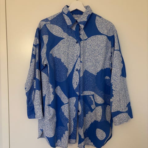Uusi sininen Marimekon oversize mallinen paitapusero