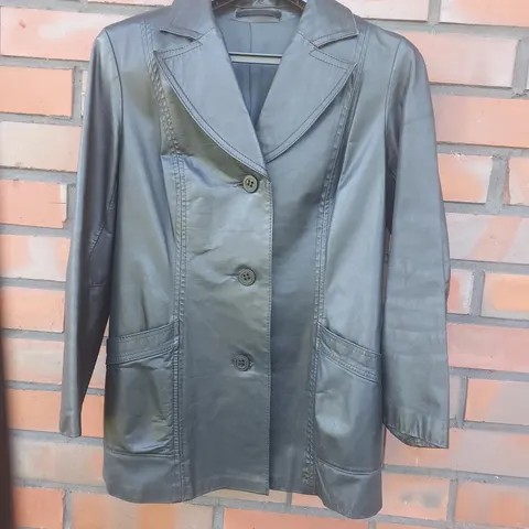 Käyttämätön jakku ja hame. Pehmeää lampaannahkaa. Alkuperäinen -80-luvun viininpunainen puku.