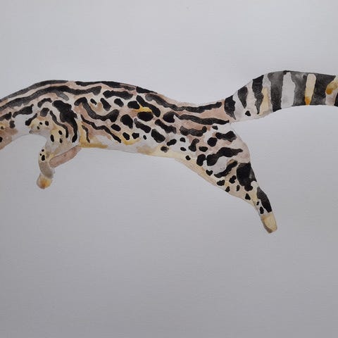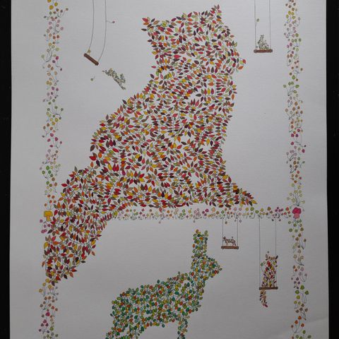 Karhokaniinin varjo, 50x70 kokoinen akvarellimaalaus paperille. Ei ole kehystetty.