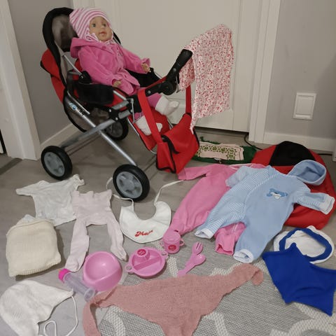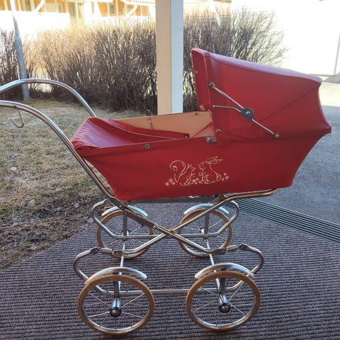 Myydään hyväkuntoiset lasten leikkivaunut vauvaleikkeihin, vaaleanpunaiset väriltään, ehjät.