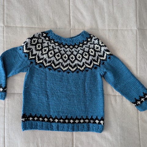 Lasten käsinneulottu islantilainen villapaita 98-104 cm
