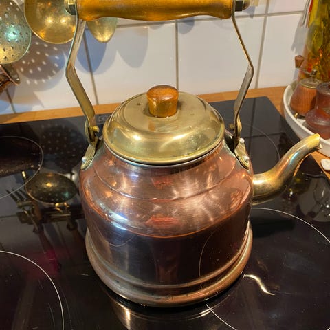 Metallinen vedenkeitin mustalla kahvalla