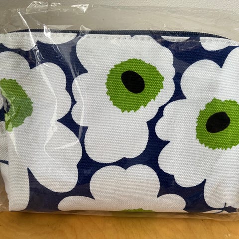 Marimekko for Finnair -matkapakkaus. Matkapakkaus sisältää silmämaskin, hammasharjan ja korvatulpat. Finnairin matkapakkaukset ovat Marimekon ja Finnairin yhteistyötä, ja ne on suunniteltu kestävämmin ja uudelleenkäytettäviksi. Matkapakkauksia ei myydä erikseen, vaan ne saa matkapakkauksina tietyillä lennoilla.