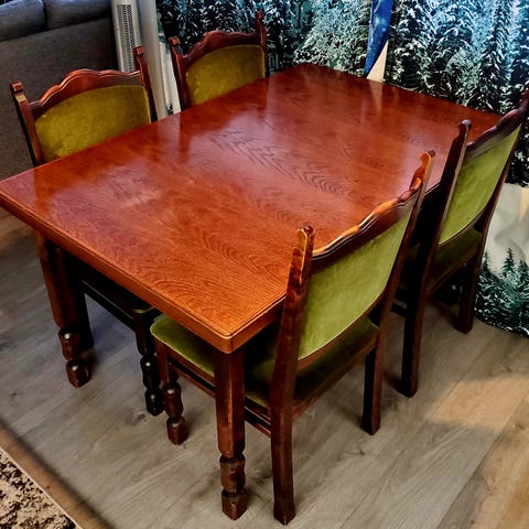Isku erittäin laadukas täyspuinen ruokapöytä + 6 Iskun tuolia