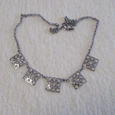 Käytössä ollut Liisa Vitalin suunnittelema hopeinen kaulakoru. Korun pituus n. 70 cm. Leimat: leijona, 925. Rasiaa ei ole. Pakettiautomaattilähetys Manner-Suomeen 6 euroa, josta saa lähetyksen seurantanumeron. Nouto Kuopiosta keskustasta.