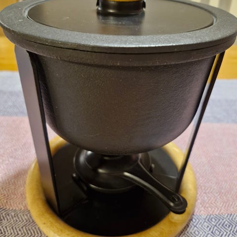 Kerran käytetty fondue pata. Keraamisen astian korkeus on 8 cm ja halkaisija 11 cm.
