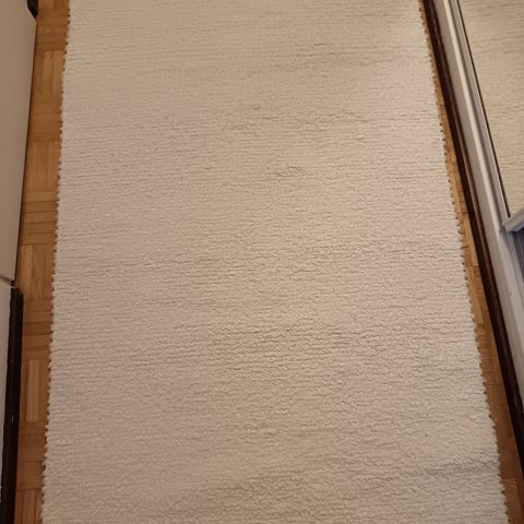 Napakasti LP-kuteella kudottu joulunpunainen matto. Tivakka kudonta ja sopii robotti-imurillekin.