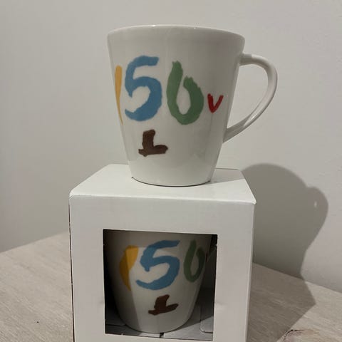 Myydään käyttämätön, Fazerin 130-vuotis juhlamuki. Pentik.