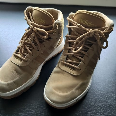 Myydään käytetyt talvitennarit Adidas Hoops Mid 3.0 Jr, koko 39 1/3 - n. 24.2cm. Väri musta/keltainen. Kengissä kevyt, pehmeä vuoraus ja keskikorkea varsi sekä kumipohja. Nämä on ehjät ja valmiit seuraavalle käyttäjälle.