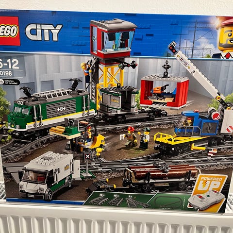 Pane LEGO® City 60198 Tavarajuna valmiiksi työhön! Lastaa kontit haarukkatrukilla, ennen kuin nostat ne vaunuun nosturilla. Kiinnitä kaikki vaunut veturin taakse, kiipeä ohjaamoon, soita pilliä ja lähde liikkeelle! Toimita lasti ajoissa perille ja pidä LEGO City toiminnassa!