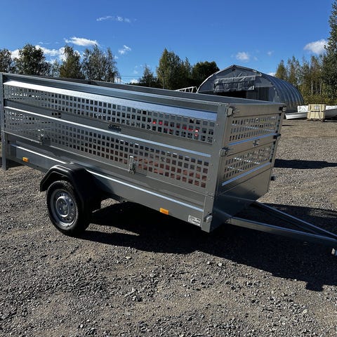 Cargo S *outlet* -Kuomussa Naarmuja -Lavan niitit ruosteessa Kantavuus: 685 kg Kokonaispaino: 825 kg Omapaino: 140 kg Vaunun pituus: 367 cm Vaunun leveys: 163 cm Lavan sisämitat: 270 x 127 cm Laidan korkeus: 26 cm Jousitus: kumivääntöjousi Renkaat: 145R13 4x100