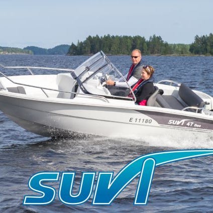 Suvi 43 + Yamaha F20GEPL Suvi 43 on mökki- ja kalastuskäyttöön soveltuva ohjauspulpettivene. Mallissa on kaksi lukittavaa säilytystilaa ja pieni keulakansi, jonka alle jää köysiboxi. Suvi 43 on kokoisekseen vakaa ja todella mukava ajettava. Moottoriteho 20-25 hv. Soutumahdollisuus. Lyhyt- tai pitkärikiselle moottorille. Suvi 43 ei ole sadevesityhjenevä. Korvaa poisjäävän Suvi 4230-mallin. Kölirauta vakiovarusteena! Suvi 43 + Yamaha F20 8 990 € Suvi 43 + Yamaha F25 9 990 € Polttoaineen kulutus Taloudellisin matkanopeus on 15-18 solmua (28-33 km/h), jolloin polttoaineenkulutus (2 hlö) on noin 6 l / h. Kulutus mitattu 2 hlön kuormalla + testilaitteisto, perämoottorina Yamaha F20. TEKNISET TIEDOT Pituus 4,23 m Leveys 1,70 m Paino 190 kg Kantavuus 4 hlö Moottorisuositus 20-25 hv Ohj. kaapelin pituus 9′ ft Kaukosäätök. pit. 7′ ft NOPEUSTAULUKKO Teho 1 hlö 2 hlö 20 hv 24 s 22 s 25 HV 26 s 24 s VAKIOVARUSTEET Akkulaatikko Ajovalo Virran ulosotto 12v Päävirtakatkaisin Hankaimet Kuminen törmäyslista Köysi/ankkuriboxi 1 kpl Lukittavat säilytystila 2 kpl Tyhjennystulppa Uimaportaat Kölirauta Walk through –keski-istuin LISÄVARUSTEET Keulakaiteet Istuintyynysarja Peräkaide rst Satamakuomu Sivukaide 170 cm rst Sivukaide 210 cm rst Takilapohja Tuulilasi Tuulilasin rst-kaari Uistelutarga Vapaputki 245 mm