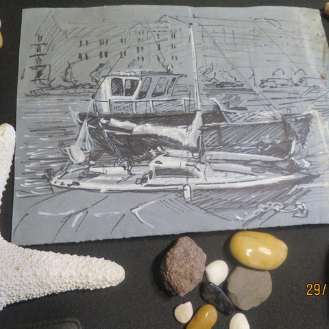 Merihistorialliset laivapiirrokset 4 kpl kehystetty