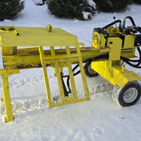 Yhdistelmäpuukone, sähkökäyttöinen Kellfrin yhdistelmäpuukone – siirreltävä klapikone, jossa on suuri kapasiteetti. • Erittäin turvallinen, suojahäkki halkaisualueen päällä ja sähkökäyttöisen katkojan kahdella kädellä käytettävä kahva • Halkaisuvoima 7 tonnia • Reilu sahanpururistikko halkaisuterän vieressä tekee puista puhtaampia • 2- tai 4-osaiset halkaisukiilat • Hiljainen käynti, hyvä työympäristö Yhdistelmäpuukone tekee työn katkoen ja pilkkoen puut turvallisesti ja tehokkaasti. Puut katkotaan 16-tuumaisella terällä varustetulla 2,4 Kw:n sähkömoottorisahalla. Puut putoavat tämän jälkeen halkaisukouruun, jonka muoto varmistaa keskitetyn halkaisun myös pienessä koossa. 4 kW:n sähkömoottorin käyttämä hydraulipumppu antaa halkaisusylinterille voiman, jota se tarvitsee puun halkaisemiseen kahteen tai neljään osaan. Kone tarvitsee 16 A:n pistorasian. Sähkökäyttöisen katkojan kahdella kädellä käytettävä kahva ja reilu suojahäkki halkaisukourun yläpuolella tekevät käsittelystä turvallista. Jos häkki avautuu, halkaisuprosessi keskeytyy. Käsittelee puita, joiden halkaisija voi olla jopa 28 cm ja pituus 60 cm. Sähkömoottorisahassa on automaattinen öljyvoitelu sekä ikkuna öljytason mittaamiseksi. Suuri halkaisuteho ja siirreltävyys tekevät siitä poikkeuksellisen muunneltavan ja edullisen klapikoneen. Siirreltävyyden ansiosta kone sopii esim. naapurusten yhteisostokseksi. Kellfrin koneille ovat tunnusomaisia turvallisuus, tukeva rakenne sekä huolella harkitut ja edulliset ratkaisut. Raakaa voimaa tiivistetyssä koossa Kellfriltä