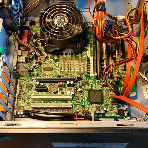 Intel celeron e3200 prosessori, 2gt ja 1gt DDR3 muistia. NVIDIA g210 näytönohjain. Tallentava DVD asema, 300w virtalähde. Ei kovalevyä/tallennustilaa