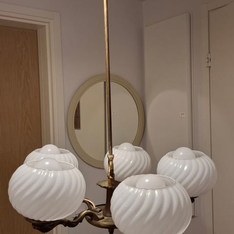 Ehjä ja toimiva vanha kattokruunu 5-haarainen.