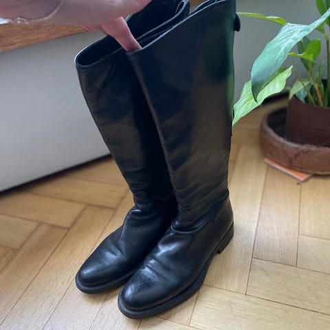 Nilkka pituiset saappaat, koko 39,5. Saappaiden väri on musta. Materiaalina on helppohoitoista stretch kangasta ja sisältä nahkaa. Tukeva 8cm:n korko nahkapohjalla sekä päkiöiden alla kumipohja.