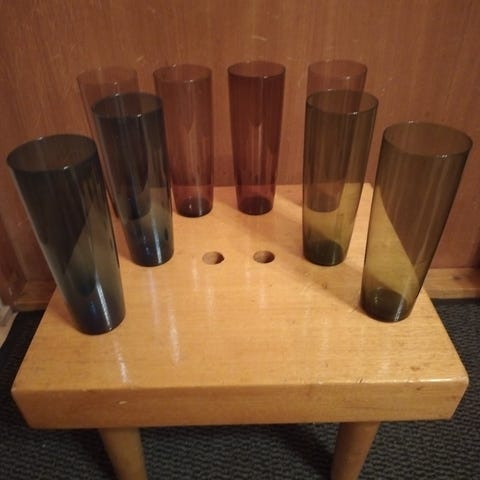 Iittala Viiru lasit 6kpl. Yksi puuttuu kuvasta. Desing Tapio Wirkkala. Tuotannossa v 1956- 1969. Korkeus 14cm ja suuaukko 6,5cm. Kunto moitteeton. Nouto Saimaanharjulta 10km Lappeenrannasta. Voin postittaa mutta postikulut sinulle