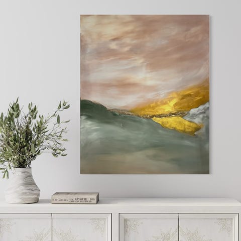 Abstrakti maalaus kulta- ja vihreäsävyinen