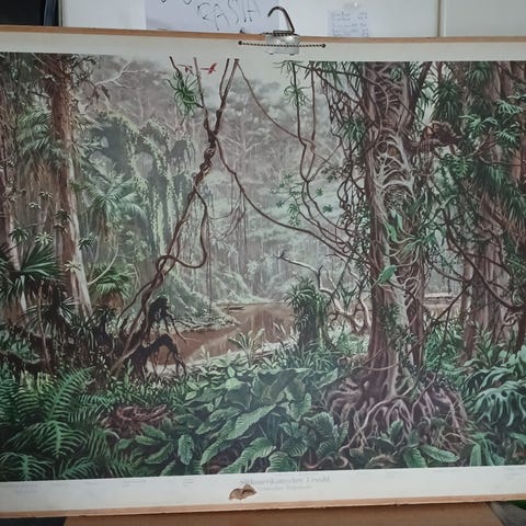 Opetustaulussa norjalainen vuono. Kunto ikäisekseen hyvä, alareunassa yksi repeämä. Koko 88 x 66 cm.