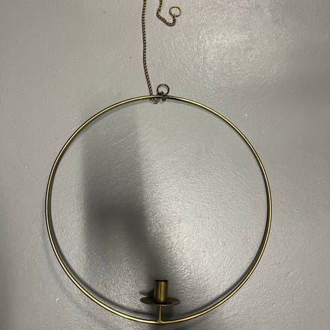Koristeellinen kynttilänjalka, jossa on käpyjä, sinisiä lehtiä ja hopeanvärisiä koristeita. Kynttilänjalka on suunniteltu yhdelle kynttilälle ja sopii sisustukseen tai juhlakäyttöön. Kynttilä on pahvilaatikossa.