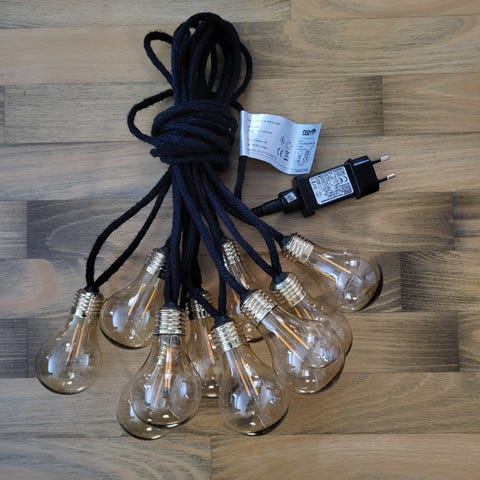 Paristokäyttöinen 'rautalanka' valosarja. Useita erivärejä sekä vilkku,- välkkytoimintoja. Ulko-ja sisäkäyttöön. Kaukosäätimen paristot sis. Valojen ei.