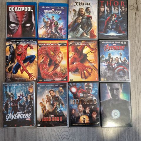 Kokoelma elokuvia sisältäen Marvel-elokuvia kuten Thor ja Deadpool, Star Wars -sarjan elokuvia, Batman-elokuvan, Hobitti-elokuvat sekä muita tunnettuja elokuvia. Elokuvat ovat pääosin dvd ja pari blueray hobbittia.yhteensä 31kpl.Joukossa kokoelmia mm starwars,bourne,nälkäpeli ym Myydään läjässä.