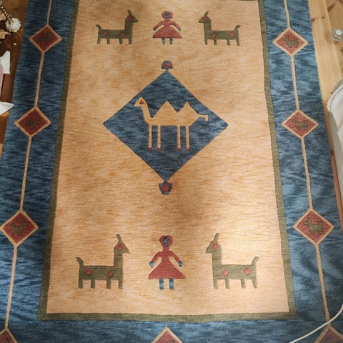 kaunis UUSI matto, turkkilainen, 2x3m, silkkikirjailtu villamatto, muut maton tiedot valokuvan lapussa. ostettu vuosia sitten matto-kympissä. ei käytetty, säilytetty rullassa vaaka asennossa varastossa. matto paksu ja painava.
