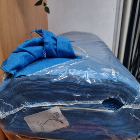 Iso pakka ruskeaa kangasta. Ei kovin paksua, käy esim verhoiksi tai muihin projekteihin mitä vaan keksii. Itsellä ei nyt tarve näille niin myyn pois tilaa viemästä.