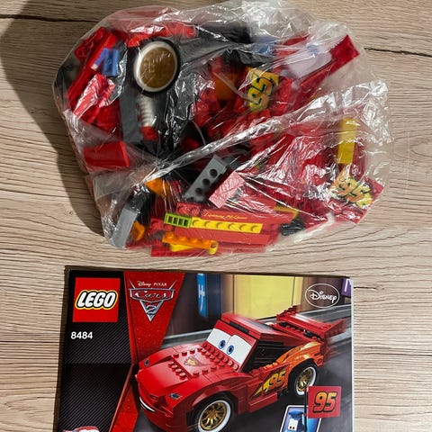 Lego Juniors 10730 Salama McQueen ja vauhtilähtöteline. Kaikki osat ja ohje tallella, toisesta ovesta puuttuu tarra.