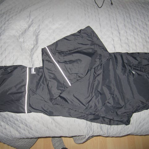 - polyesteria , takissa ohut vuori, housut vuorettomat