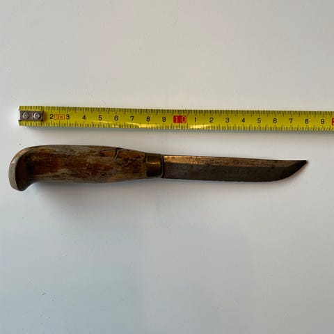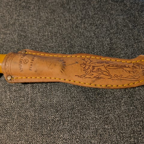 Puinen kahva ja 10cm hiiliteräs takaa monipuolisen käyttötarkoituksen. Tämä on hyvä kaveri vaikka kalalle , retkeilyyn tai miksei yleispuukkonakin. Mukana nahkainen tuppi jossa sisällä muovinen erillinen suojaus.