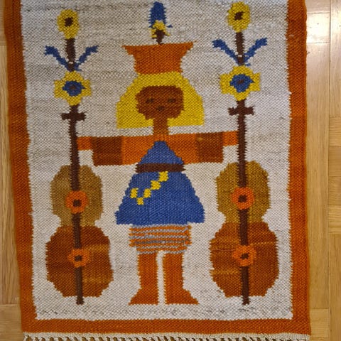 Myydään nostalginen kudottu villatekstiili. Seinälle tai tuolimatoksi. Suomalainen, ehjä, hajuton. 45x125