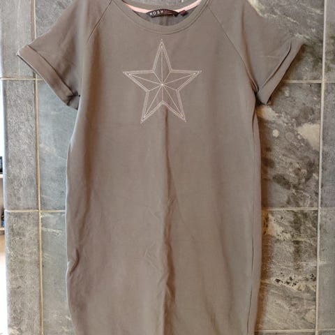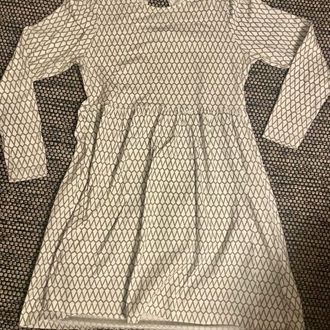 Mustan harmaa. Taskut. Sauma selässä, voi hieman pienentää jos tarvetta. Farkkua jäljittelevä denim mekko. Joustavaa kangasta. Pesty muutaman kerran, käytetty vähän. Ei mitään vikaa.