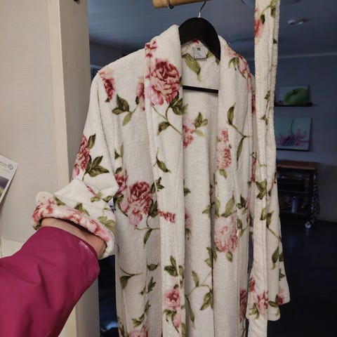 Kaunis ruusukuvioinen aamutakki
