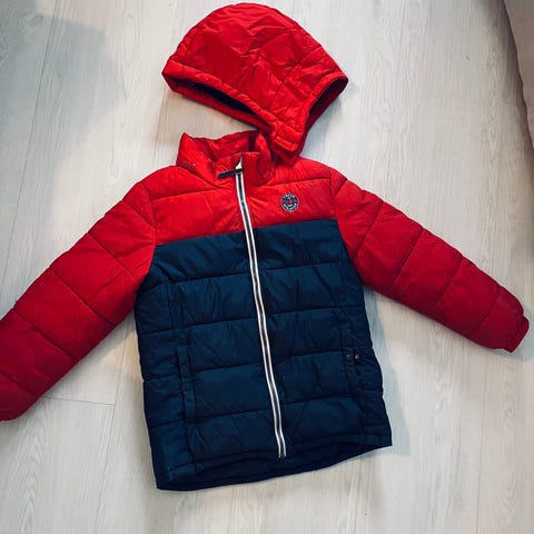 Toppatakki, koko 134. Meillä ei kotieläimiä eikä tupakointia. Siisti kunto.