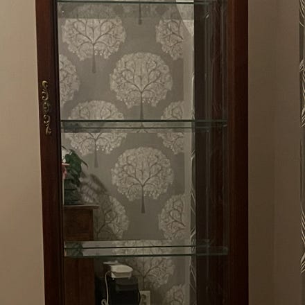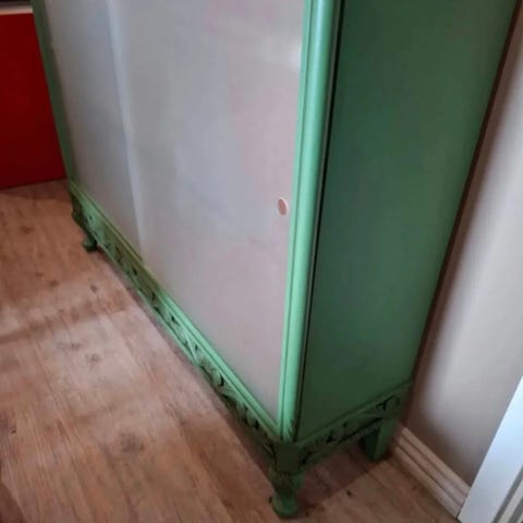 Kunnostettu vanha puinen lasivitriini. Hetken aikaa ollut käytössä kunnostamisen / maalaamisen jälkeen, mutta en huomannut moitittavaa.