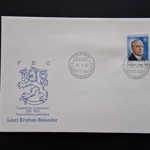 Hannes Kolehmainen FDC ensipäivä 9.10.1989
