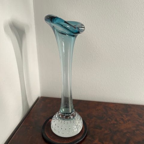 - Käsinpuhallettu lasimaljakko,suuaukossa ilmakupla( kuva 6)